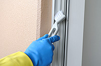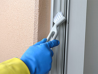 ガラス、サッシ、レールに付着したホコリ、ゴミをブラシやバキュームで除去します。