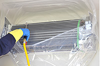 アルミフィンやファン(吹き出し口)に溜まったホコリやカビを専用の洗浄機で高圧洗浄し、キレイに除去します。