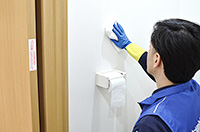 トイレ内の天井や壁面、扉、換気口など全体をマイクロファイバークロスで乾拭きして作業完了です。