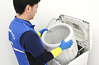 全自動洗濯機から洗濯槽を取り外し、細かな部分まで丁寧に洗浄します。