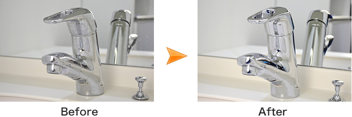 輝きを失った蛇口も専用洗剤で水垢や汚れをキレイに落としてピカピカに洗浄します。
