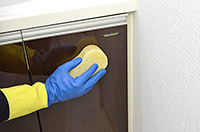 収納庫表面も傷つかないよう、丁寧に洗浄します。